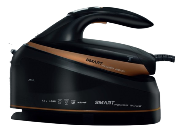 Generator pary o potężnej mocy i silnym uderzeniu pary. Umożliwia prasowanie zarówno w pionie, jak i w poziomie. Prasowanie jest niezwykle łatwe i efektywne za sprawą wygodnego uchwytu żelazka oraz ergonomicznie umieszczonego przycisku wyrzutu pary. Funkcja Smart Power sprawia, że urządzenie samoczynnie dobiera odpowiednią temperaturę do różnych rodzajów tkanin. Funkcja Quick Start zapewnia błyskawiczną gotowość do pracy. System anti-drip chroni przed kapaniem. Walorów urządzenia dopełnia wysmakowany, ekskluzywny design.