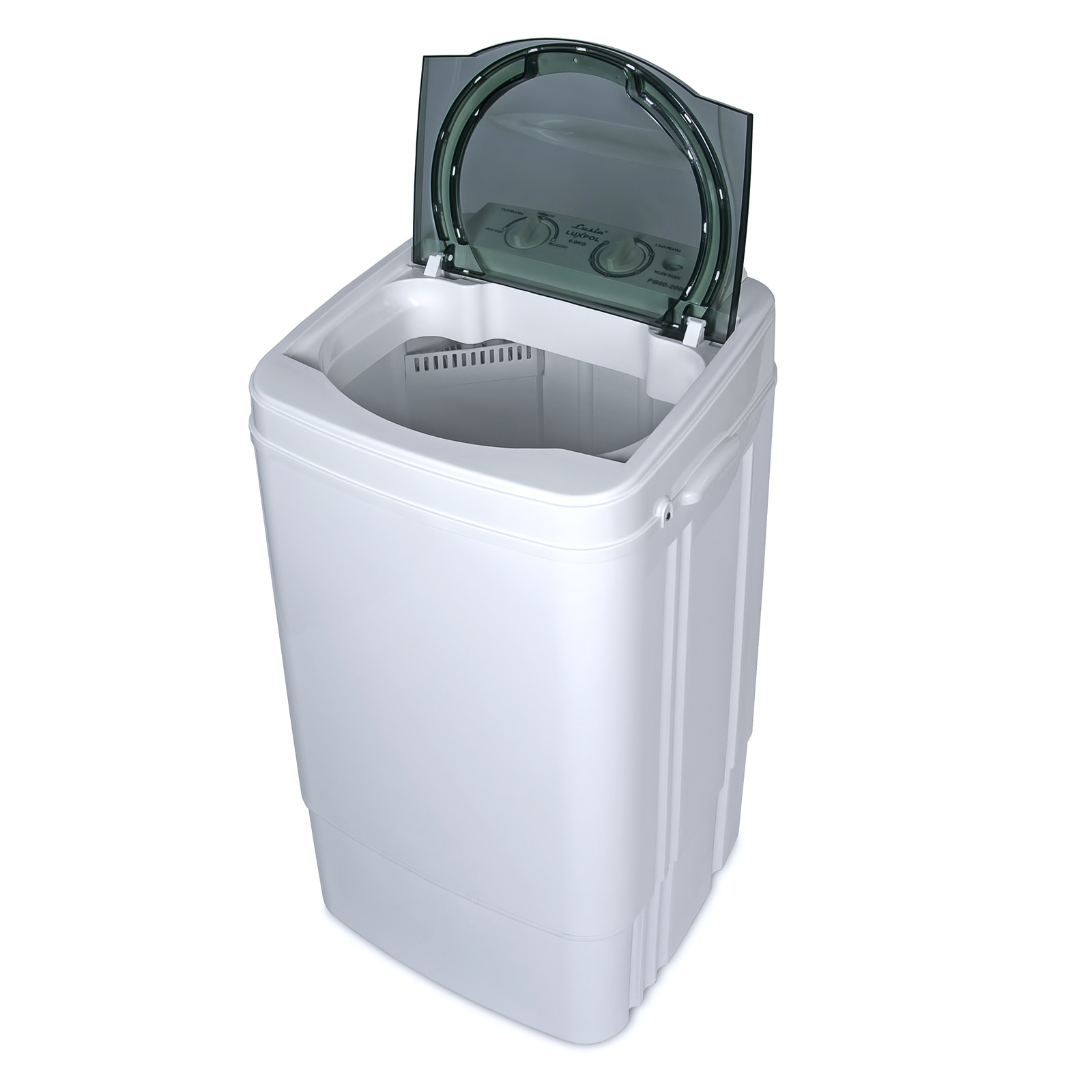 Pralka posiada także regulację czasu prania w zakresie od 0 do 15 minut. Pralka wirnikowa Lusia PB60-2000E to półautomatyczna pralka wirnikowa. Obudowa pralki wykonana została z wysokiej jakości tworzywa sztucznego, które nie ulega korozji. Zastosowane wyłączniki, w tym wyłącznik czasowy, pozwalają na łatwe sterowanie i wybór odpowiedniego sposobu prania. Panel sterowania jest wodoodporny, napisy w języku polskim. Pokrywa pralki jest składana, transparentna w kolorze szarym.