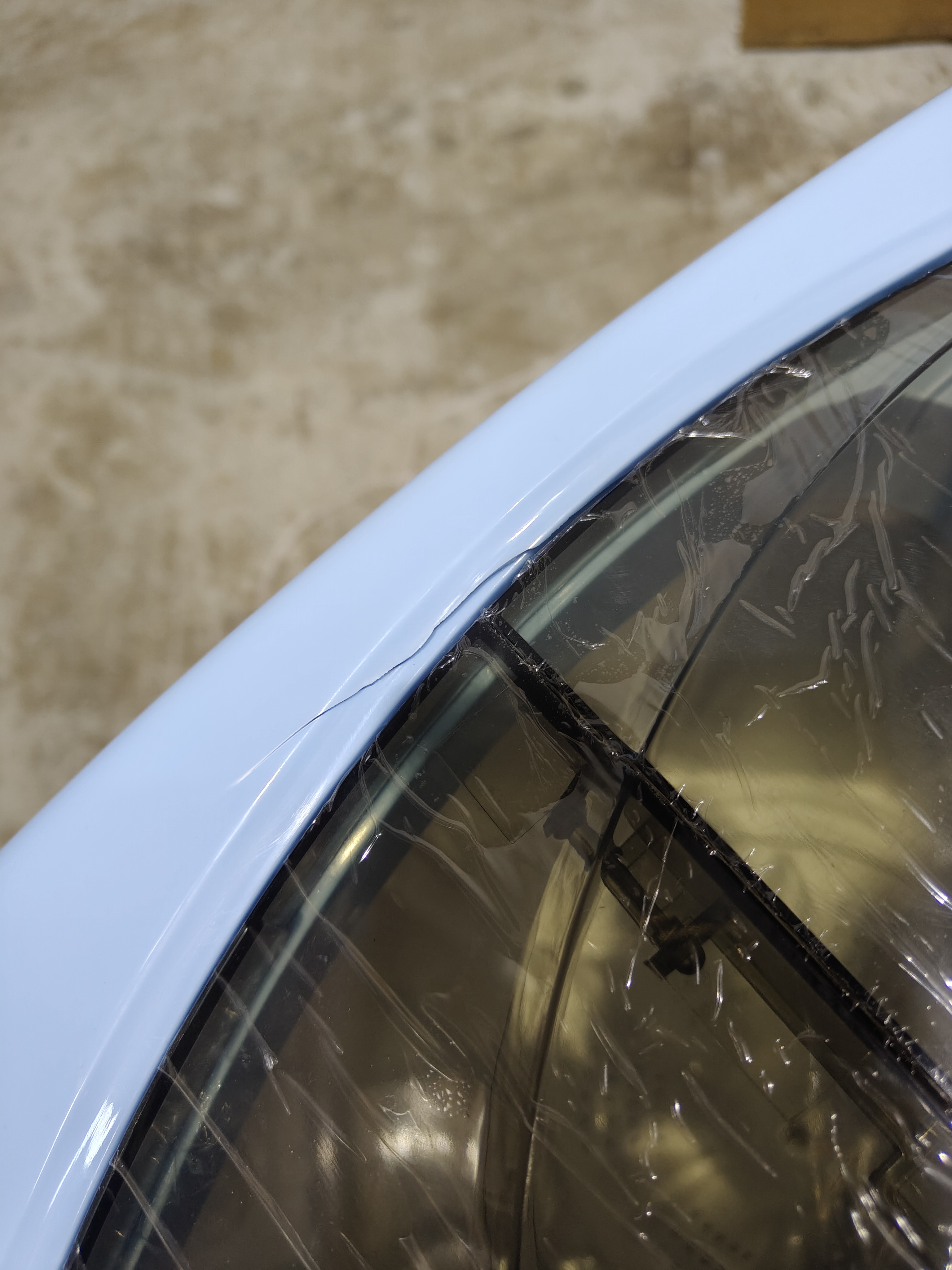 Wgniecenie w wyniku transportu, widoczne na zdjęciu